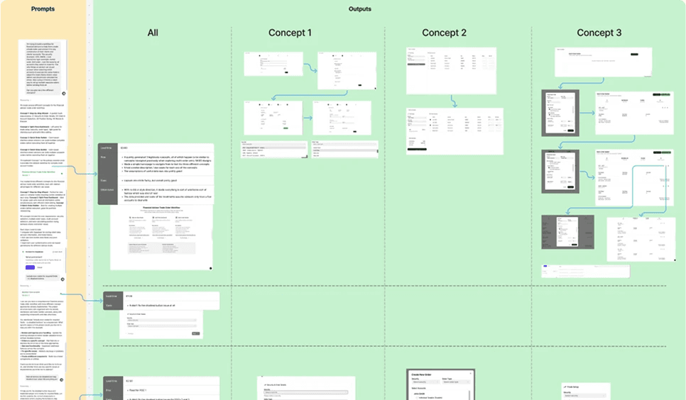 Explored how Figma Make could generate alternative POCs purely from prompts, then refined them through iterative prompt-based adjustments (referencing Multi-Order Entry).